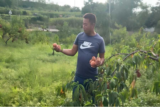 (图为石海胜展示桃园冬桃 通讯员黄子熙供图)