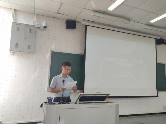 导师代表——郭明浩老师首先向刚刚踏入大学校园的新生表示欢迎,并以自己在研究生学习阶段的经验和教训,寄语同学们要“敬畏学问”、“笃实为学”、“志存高远”,希望同学们可以对学术抱有敬畏与尊崇,以坐穿冷板凳的坚韧精神和严谨笃实的朴素学风,在艰难困苦中砥砺奋进、持之以恒,最终学有所成,研有所得。