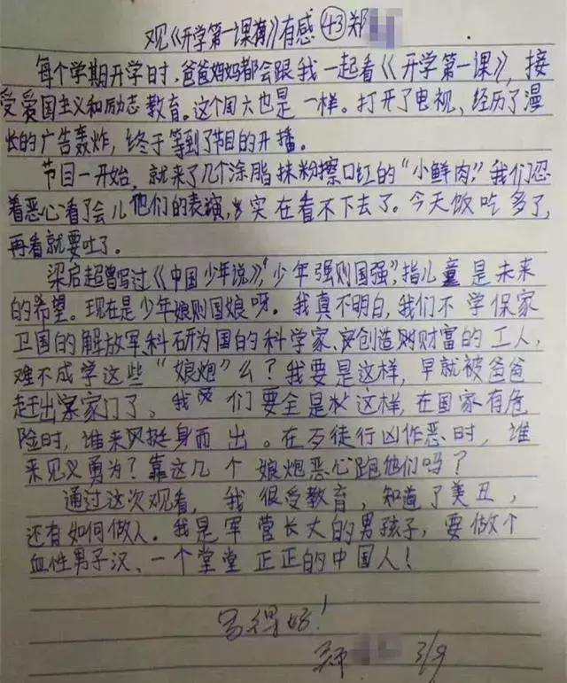 (《观< 开学第一课>有感》学生作文,图片来源于网络)