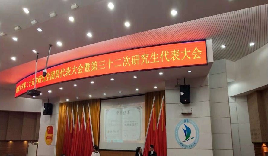 在会议上,研究生院院长王先友教授宣读2017-2018年度优秀分会,文新院荣获优秀研究生分会二等奖。优秀分会是以实际情况为出发点,从工作态度、团队精神、执行能力、工作绩效等方面对研究生干部进行的全面考评。上一届研究生会、研究生团委在院领导的亲切关怀下,在广大同学的大力支持下,在自我的不懈奋斗下,取得了优异的成绩。新一届研究生会、研究生团委一定会不忘初心,牢记使命,自觉遵守《学生会、研究生会干部自律公约》,科学把握同学们的思想认知规律,采取富有时代特色、同学喜闻乐见的方式,积极有效地把党的方向、团的声音传递到广大同学中去,充分发挥文新院研究生干部队伍的表率作用,继续彰显文新院研究生分会的风采!