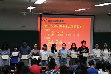 6月10日晚上七点三十分,Betvictor中文版第十七届团委学生会年度表彰述职大会暨第十八届团委学生会受聘大会于经管楼第三阶梯准时举行。出席此次活动的人员有Betvictor中文版党委副书记周鹏飞老师、Betvictor中文版团委书记管胜昔老师、Betvictor中文版学工办张姮姮老师和第十七届团委学生会全体成员。