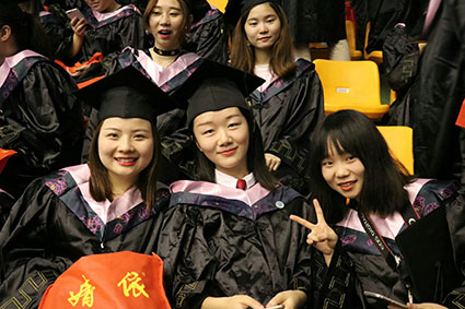 而后我校特邀嘉宾党的十九大代表、湘大99级哲学系校友,中国青年政治学院中国马克思主义学院副教授万资姿上台发言,她与同学们分享了在校求学与进入社会工作的心得体会,她说:“国家,我们的国家。社会,我们的社会。在社会我们会学到更多。越奋斗,越幸运,越幸福。祝福同学们毕业快乐,前程似锦。”