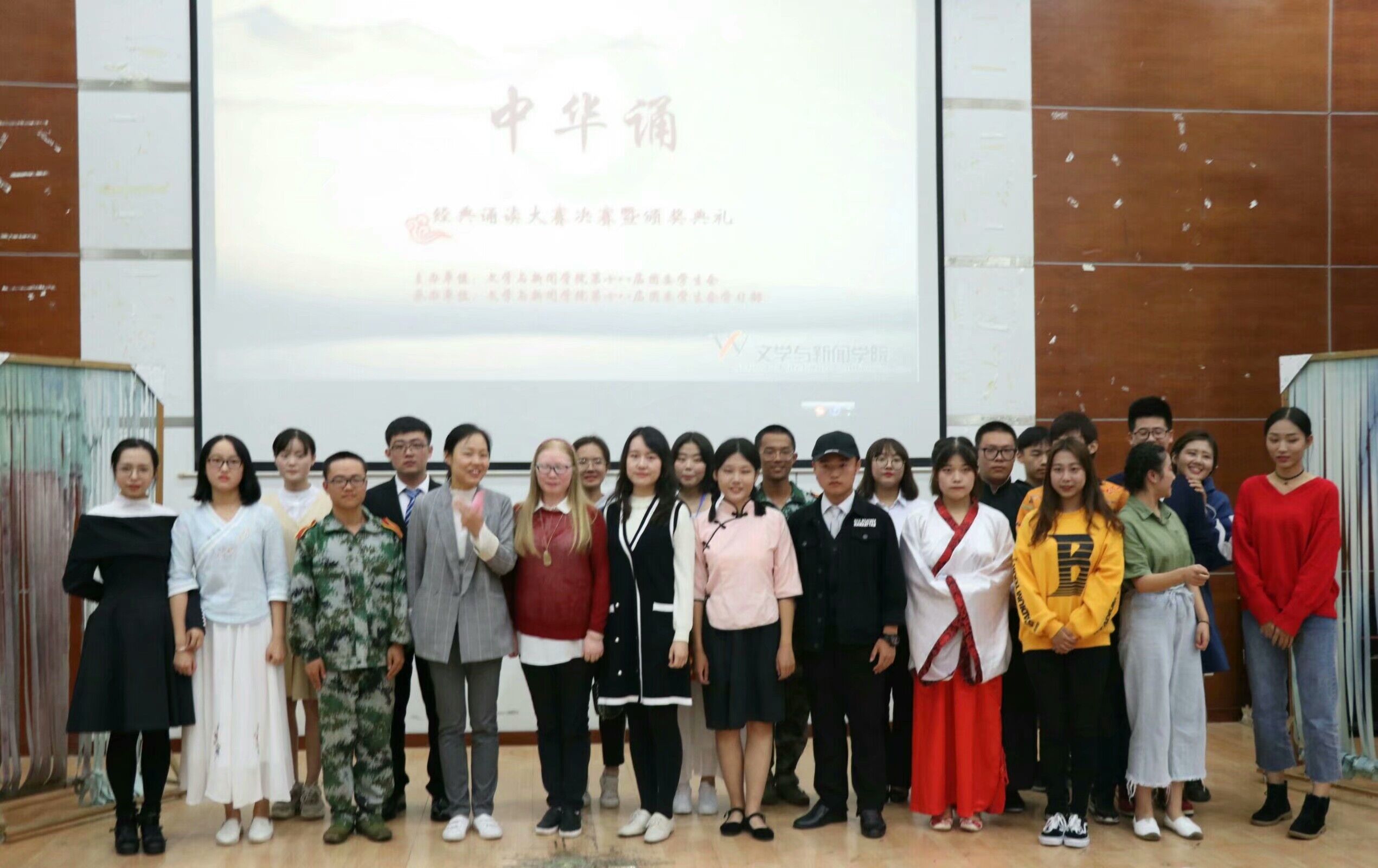 比赛正式开始,首先出场的是一号小组,来自17中文二班的郭彤旭和17中文三班的向筱旦同学,一首《可爱的祖国》展现了他们深刻的爱国之情;二号选手是来自18广告一班的李一航同学,他用激情的话语朗诵了一首《我是中国人》,让在场的各位热血沸腾;三号选手郭昕妍也来自18广告一班,身穿旗袍的她深情地朗诵了一首《我的祖国》,一腔热血溢于言表;四号选手17新闻一班的赵东宇同学一首《请与我同行》展现了舒婷的浪漫与自己的情怀;“这个夜晚,我为月光下的中国写一首诗。”五号选手是17中文一班的向维维同学,柔情似水的朗诵展现文科女孩特有的气质;六号选手是来自18新传一班的赵子杰同学,吐字铿锵、感情真挚,一首《我的南方与北方》令全场激情澎湃。