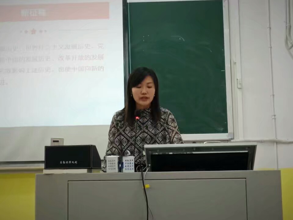 授课一开始,陈老师先向大家介绍了中国共产党第十九次全国代表大会的时间、主要精神和主要目标等基本信息,为本次授课的内容作了一个最基本的阐述,通过图表的形式使大家对党的十九大内容形成了一个基本的框架。