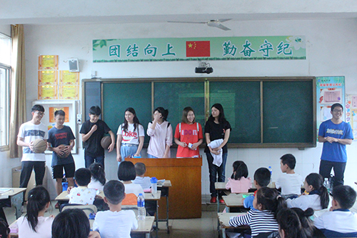 本次活动中,体育部的教员带领着三年级的孩子们学习了打篮球的热身事项,还与孩子们在同一个篮球场上练习。体育课下课之后,孩子们回到了教室,学校即将放学。授课接近尾声,体育部干事们以上台表演赢奖品的方式结束本次授课,孩子们一个个踊跃的举手参加,有的表演了背诵、有的给大家说谜语、还有四个女同学一起演唱刚好遇见你,甚至全班同学在一个男生的带领下唱了追光者。