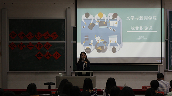 首先,由张姮姮老师进行就业指导 ,她从就业方面入手,提醒同学们要对毕业生双选会多加关注,并为大家提供了2019届高校毕业生就业月历供大家参考,让大家对自己的投职或考研时间有更明确的认识。