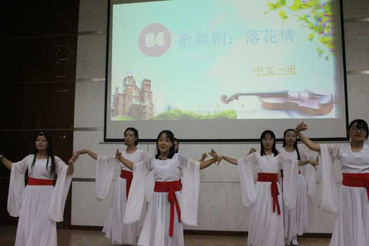 全场大赛舞蹈类型可谓丰富多样,开场新传三班带来的舞蹈串烧,带来街舞表演的同学们毫不怯场、随充满节奏感的旋律摆动身体,动作张弛有度,而场下也是掌声雷动,节目进一步点燃了现场观众的热情。中文一班的《落花情》歌舞剧更是令人沉醉,清颜白纱,落花片片,“丝绢轻拂,纷飞的是百转柔情”,一段轻歌曼舞讲述一段才子佳人的缠绵往事;与前两者截然不同的是中文2和新传2的“萌系”舞蹈,前者表演同学身着卡通睡衣用一段充满活力的舞蹈展现了宿舍“相爱相杀”的日常,而后者则是通过一段活力四射的表演展现了男生也有婀娜多姿的一面,显示了青春年少的活力和朝气蓬勃。