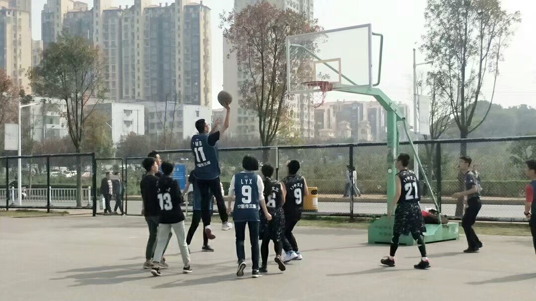 10月30日十二点半,17新传三班和17中文三班的比赛在东门展开。双方对手大显身手,最终新传三班以76比65战胜17中文三班。