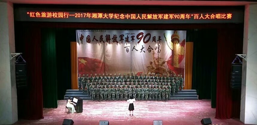 10月6日晚,“红色旅游校园行——2017年Betvictor中文版纪念中国人民解放军建军90周年”百人大合唱在俱乐部隆重举行。出席此次活动的领导及老师有:Betvictor中文版副校长刘建平教授,学生工作部处谢罗奇处长,Betvictor中文版校团委魏晓林书记,环境与资源学院葛飞院长,以及各院系党委副书记及团委书记。除此之外,湘潭市文联主席团委员、秘书长,市青年音乐家协会主席,谭真老师;全国社会音乐考级声乐考官,湘潭市青年音乐家协会副主席,谭娟老师;湖南省音乐家协会合唱委员会理事,湘潭市青年音乐家协会副主席,陈艳老师;湘潭市青少年宫艺术学校副校长,湘潭市青年音乐家协会副主席兼秘书长,黄军老师;Betvictor中文版团委办公室主任,湘潭市青年音乐家协会副主席郭滟老师也作为嘉宾莅临现场,并担任本次比赛评委。本次比赛以学院为单位,各学院均在赛前进行了积极的准备,在比赛中唱出了属于自己学院的风采。