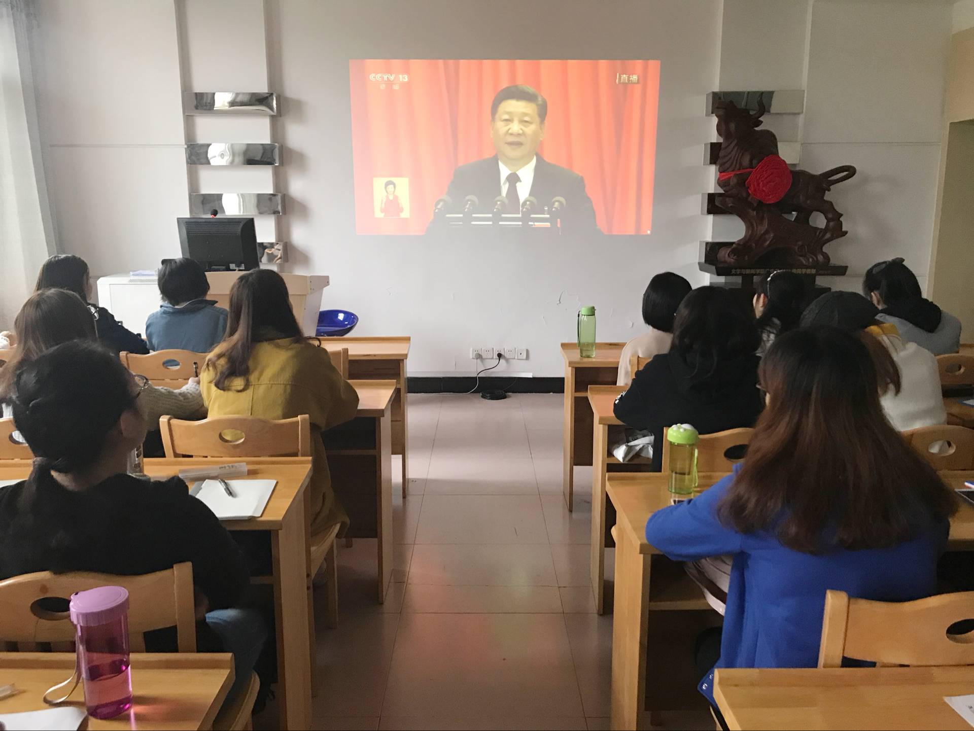 会议室内严肃庄重,气氛庄严热烈。全体参会人员共同观看“中国共产党第十九次全国代表大会开幕式会”直播。开幕式主题为:不忘初心,牢记使命,高举中国特色社会主义伟大旗帜,决胜全面建成小康社会,夺取新时代中国特色社会主义伟大胜利,为实现中华民族伟大复兴的中国梦不懈奋斗,创造历史伟业。