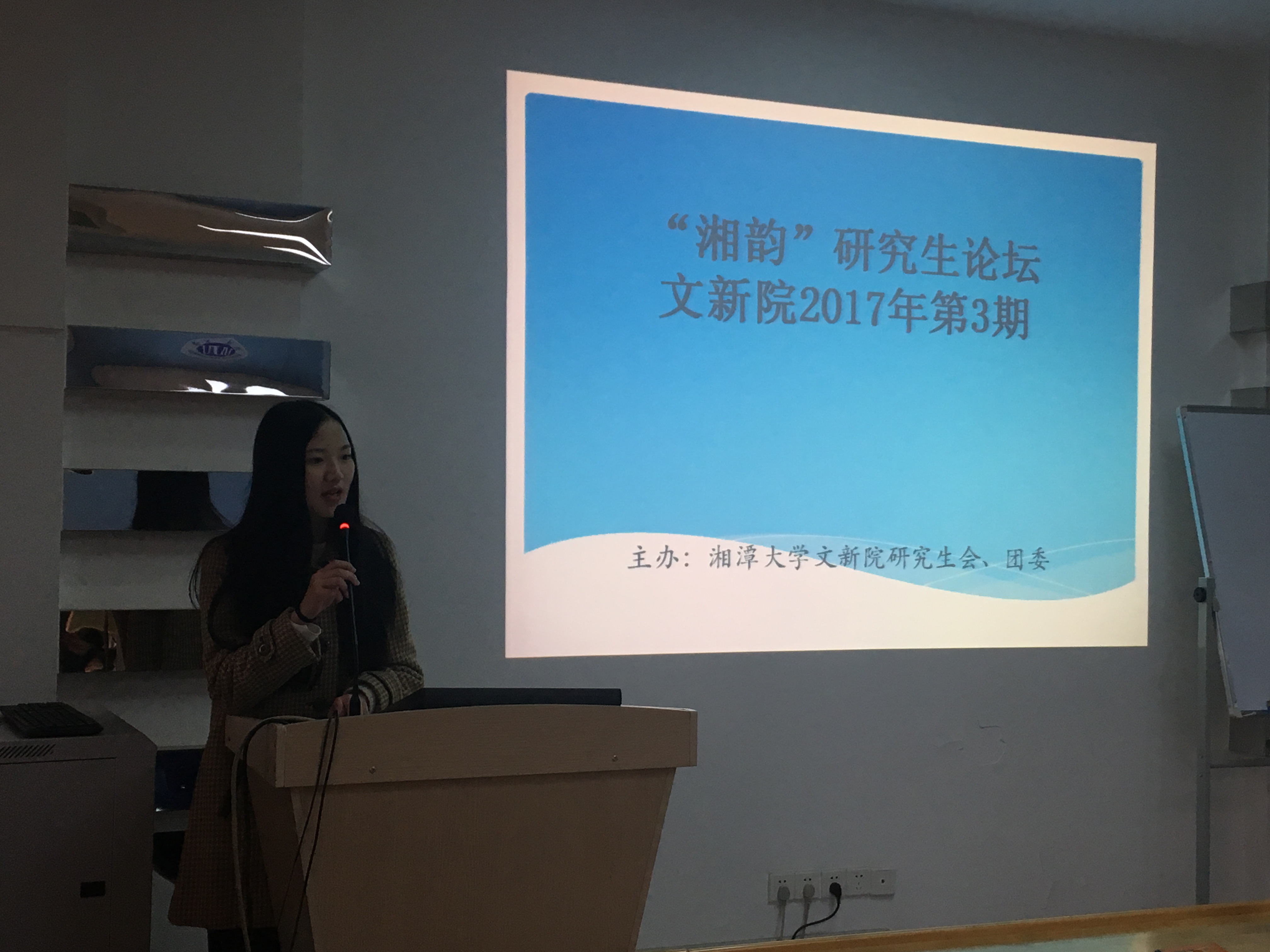 3月5日上午九点,“湘韵”研究生论坛文新院分场第三期在文科楼318教室顺利举行。本次讲座由2016级比较文学研究生周秦主持,主讲人有Betvictor中文版任传印老师、14级古代文学研究生柳王敏以及外国语学院15级研究生刘慧。