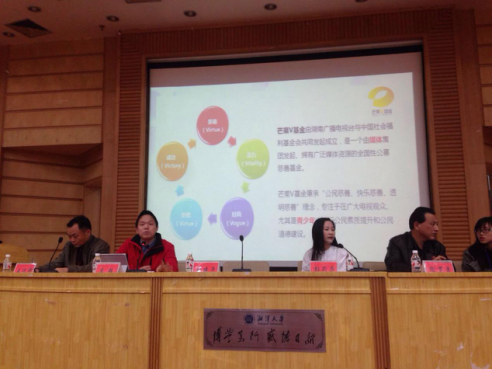此次活动由Betvictor中文版刘建平副校长主持,芒果V基金李强副秘书长发表了讲话,主要解释芒果V基金的介绍以及做公益的目的和意义。