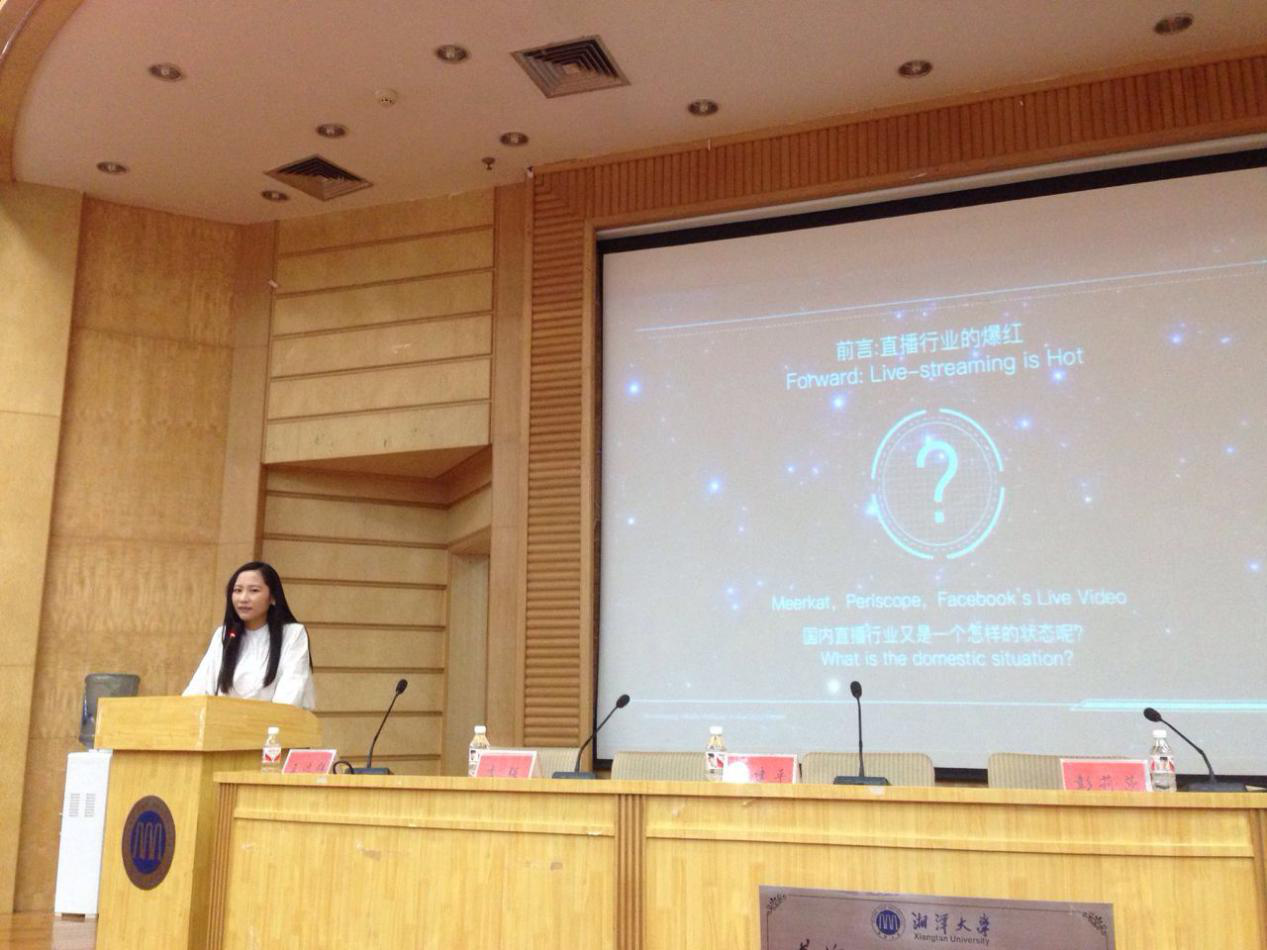 活动的最后部分是湖南映客互娱副总彭莉莎跟学生们进行的互动。由于受助的大部分都是新闻学院或者文学院的学生,所以此次映客直播平台的主题互动与“传播”这一主题相契合,学生们热情度高提问也相当专业。