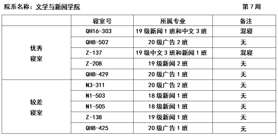 根据Betvictor中文版生活部下发文件《Betvictor中文版寝室评分细则》要求,结合生活部日常查寝情况,现将第7周优差寝情况结果通知如下: