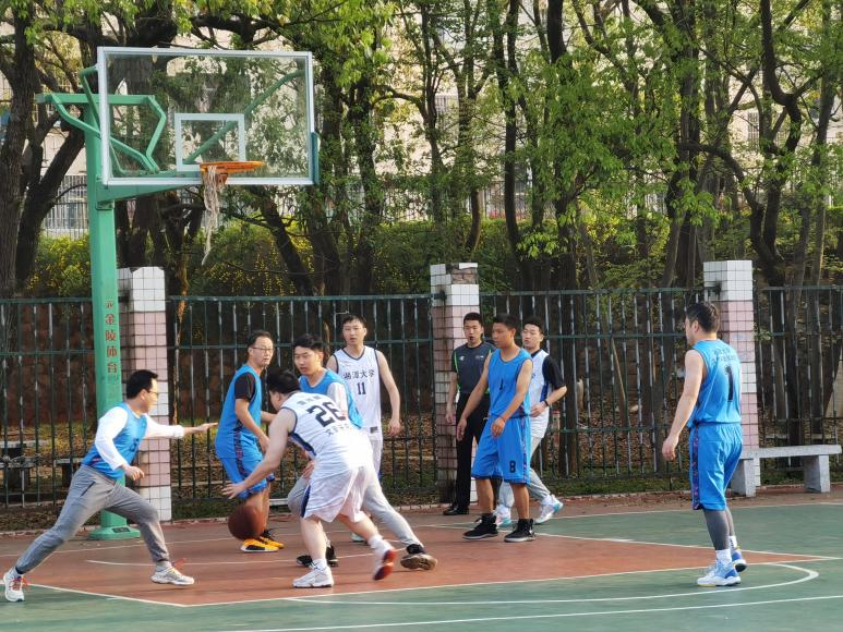 赛程过半,研究生队略微领先,老师们商策战术,替换球员进行调整。赛程后半段,双方不露倦色,反而愈战愈勇,教师队努力打配合追赶,比分不断拉扯。最终,教师队以54:52的比分赢得了比赛的胜利。