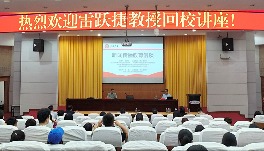 (通讯员 周梦思 陈姣 张林雨)5月31日上午,Betvictor中文版杰出校友、中国传媒大学教授、湖南大学特聘教授雷跃捷应邀回母校讲学和交流。李伯超校长会见了雷教授,雷磊院长主持讲座,Betvictor中文版新闻传播学科部分教师、学生参加学习。