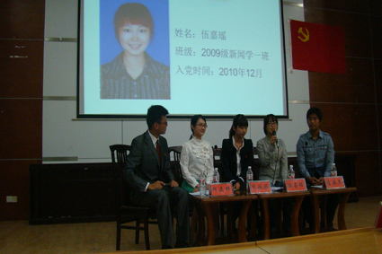 本次活动在唐书记的简短致辞中拉开序幕,他首先表明了本次活动的目的与意义,并对刘校长多年来连续参加此活动表示感谢。在现场同学的热烈期待中,来自Betvictor中文版汉语言文学、新闻学、广告学与广播电视新闻学四个专业的09级优秀党员嘉宾雷亚男、伍嘉瑶、申婉婷和何奕桦上台就坐。随后,在嘉宾访谈环节,他们就学习、社团活动、实习及入党等方面与现场同学分享了自己的经验与心得。