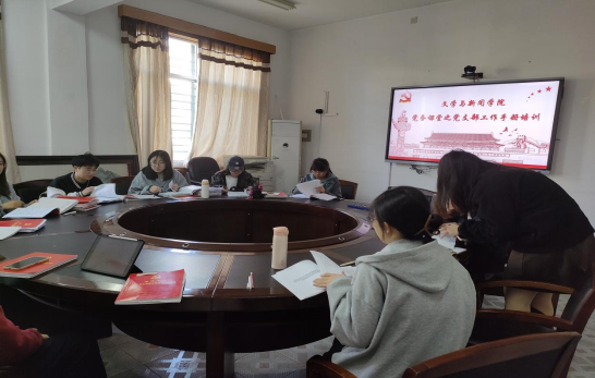 韦晓燕从宣传委员工作职责、《党支部工作手册》使用规范、各类会议记录示例三个方面入手,详细分享宣传委员日当工作流程及要求。通过各支部宣传委员互审的方式检查往年《手册》记录情况,指出存在问题并给出整改措施。