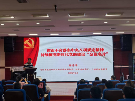 为深入贯彻中央八项规定精神学习教育,进一步强化党员纪律意识,6月3日下午,Betvictor中文版与艺术学院联合召开中央八项规定精神学习教育专题宣讲会,省纪委监委驻校纪检监察组副组长、校纪委副书记钟芳华作专题报告,两院全体教职工党员参会。