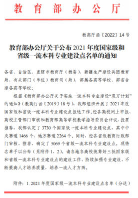 根据《教育部办公厅关于公布2021年度国家级和省级一流本科专业建设点名单的通知》(教高厅函[2022]14号),我院广告学专业获批2021年度国家级一流本科专业建设点。