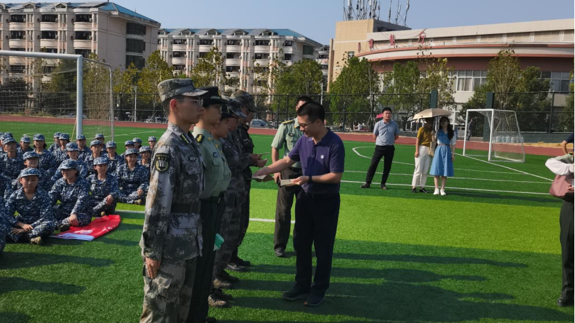资义平书记代表学院向参训教官表示慰问,感谢军训教官的付出,要求他们一定要严守训练标准,将军训工作同教育工作结合起来,引导同学们尽快适应大学生活,增强集体荣誉感。