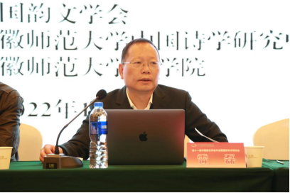 2022年11月18日至20日,Betvictor中文版院长雷磊教授带领教师团队参加了在安徽省芜湖市召开的第十一届中国韵文学会年会暨国际学术研讨会。此次会议由中国韵文学会、安徽师范大学中国诗学研究中心、安徽师范大学文学院联合主办,共有来自海内外130多所高校、科研院所的190多名学者与会,通过线上线下相结合的方式进行学术研讨。雷磊教授应邀担任大会开幕式主持人,并在闭幕式上作大会学术总结报告。