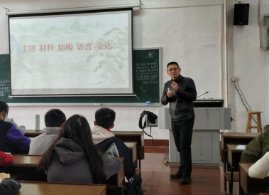 本次示范课授课以“语境”为主题,以主题、材料、结构、语言、表达为切入点,并结合语篇写作、过程写作及交际语境写作。在授课过程中,雷励教授结合中国古代典籍《桃花源记》《梁溪漫志》《止斋论决》等选文及习近平主席讲话进行讲解,提醒同学们在写作过程中要突出立意的作用。雷教授指出,写作知识如何运用到具体写作中是大学阶段需要学习的,他以杨万里赠诗于林子方的故事为例,阐述《晓出净慈寺送林子方》的交际语境,推测诗人的表达目的。
