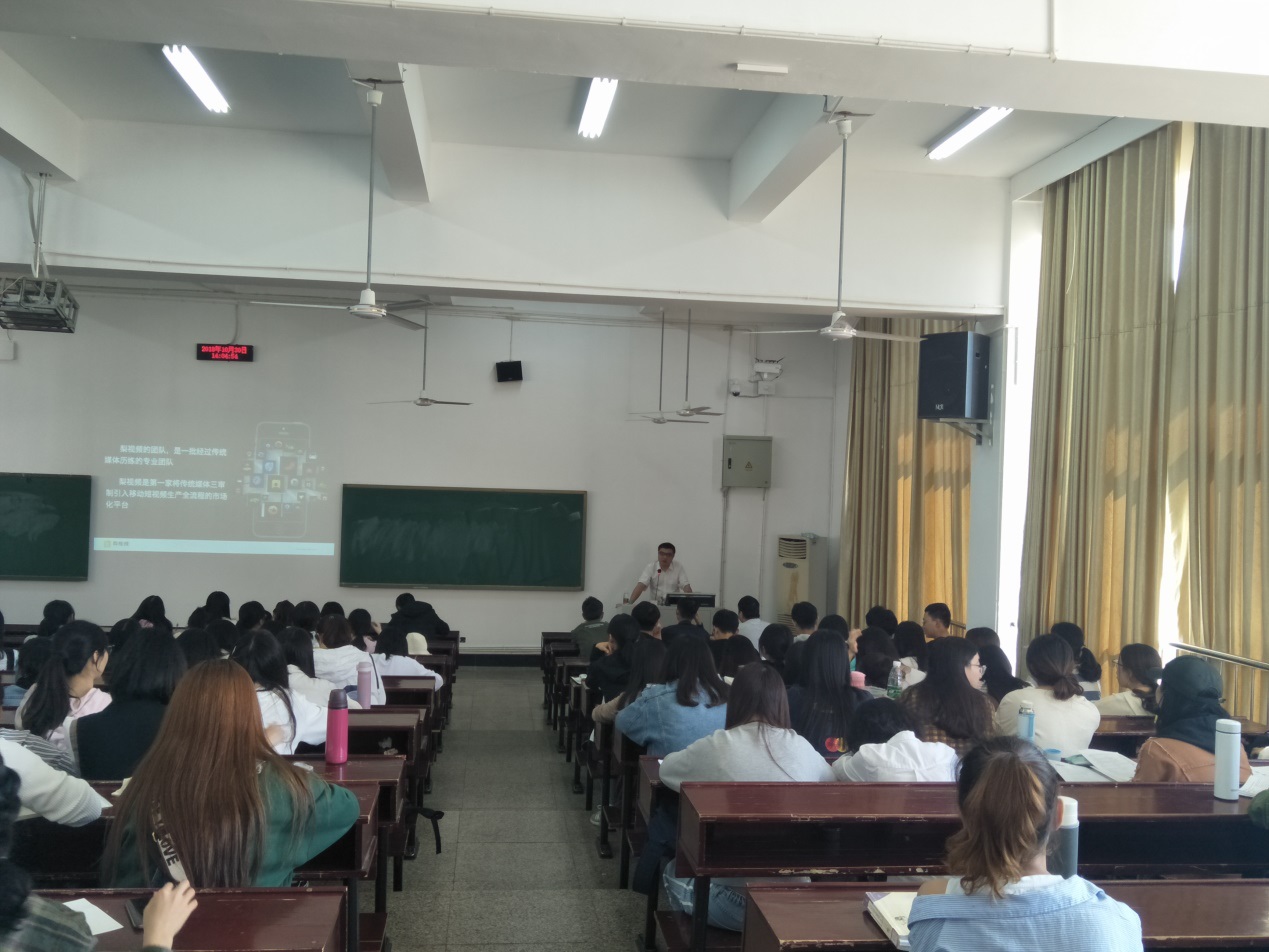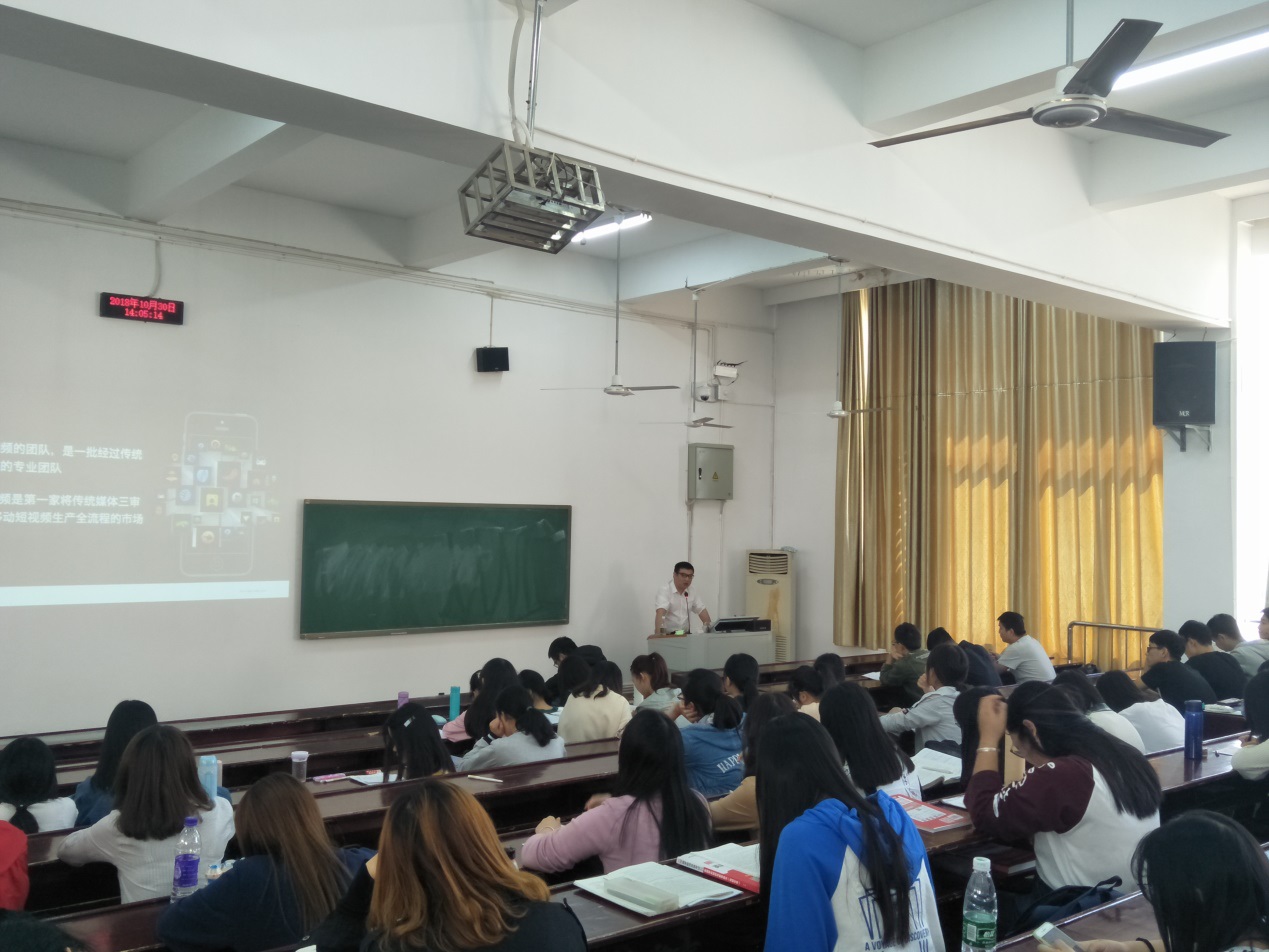 金秋十月,丹桂飘香。10月30日,2018年秋学期新闻传播实务前沿讲座第八期于下午2点在Betvictor中文版逸夫楼第三阶梯教室如期举行。梨视频湖南区主管熊双老师以“发现身边之美 讲好校园故事”为主题,以梨视频为例,分析了泛娱乐化时代新闻媒体的发展及转变。本次讲座由Betvictor中文版许高勇老师主持。