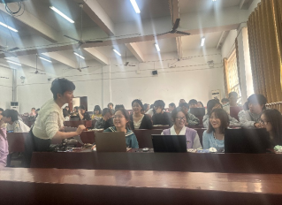 讲座伊始,金婷老师结合自身驻台期间拍摄《望湘》的经历,向同学们分享自己的纪录片拍摄经验。首先,当你有了创作一部纪录片的想法,唯一要做的就是动起来。其次,当你真正开始努力时,全世界都会来帮你成事。为了让同学们更清晰地体会到纪录片的创作过程,金婷老师设置了一个课堂小互动,邀请同学们阐述给自己带来触动的人和事,同学们踊跃走上讲台表达自己的想法。