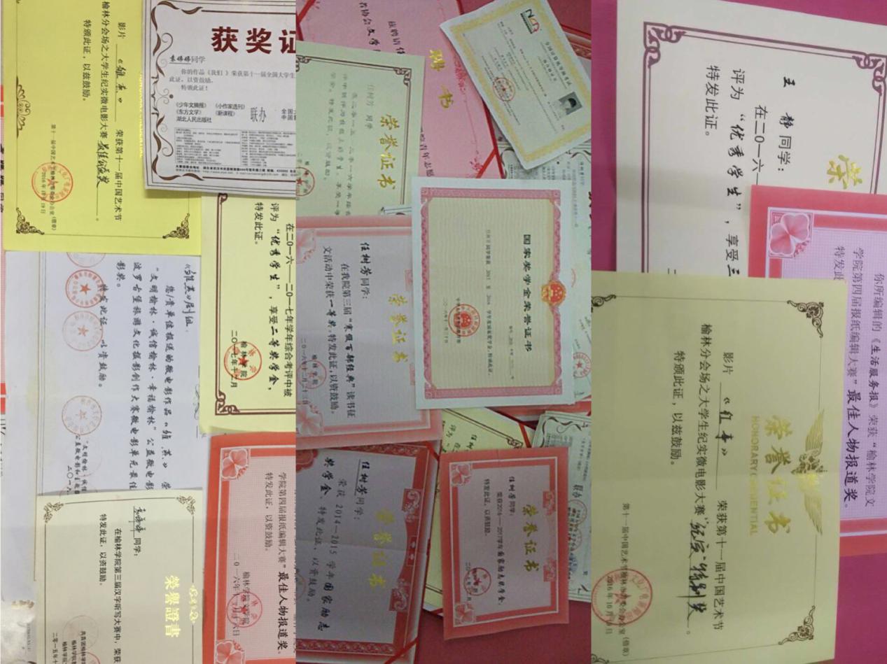 (此图为三人本科期间所获的奖状)