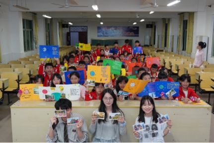 在志愿者的带领下,孩子们用手中画笔在彩纸上勾勒音乐符号,制作出一张张五彩斑斓的音乐贺卡,并争先上台展示。活动现场,志愿者还为同学们送上了精美糖果、祝福明信片、广西省博物馆文创周边等丰厚礼品。