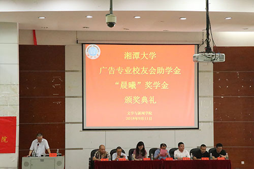 9月11日下午,Betvictor中文版广告专业校友会助学金、“晨曦”奖学金颁奖典礼于逸夫楼第二报告厅举行。副校长刘建平、广告专业校友易建国、杨乐、阳曦曦、傅硕慧、罗丹,兴湘学院党委副书记樊军,院领导李剑波、赵猛、季多武,周鹏飞、田华、刘晓丽、学工办以及广告系全体师生参加。整个活动由院长李剑波教授主持。
