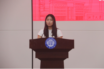 在校生代表2025级中国语言文学博士生周巧结合自己在校期间的求学和学工任职经历,深刻讲述湘大人的“扎根”“探索”和“奉献”精神。她激励学弟学妹们,要常怀“博学笃行”之心,不忘“盛德日新”之志,在文新院这片沃土上,共同耕耘,相互砥砺,努力成长为有格局、有担当、有创造力的湘大青年。