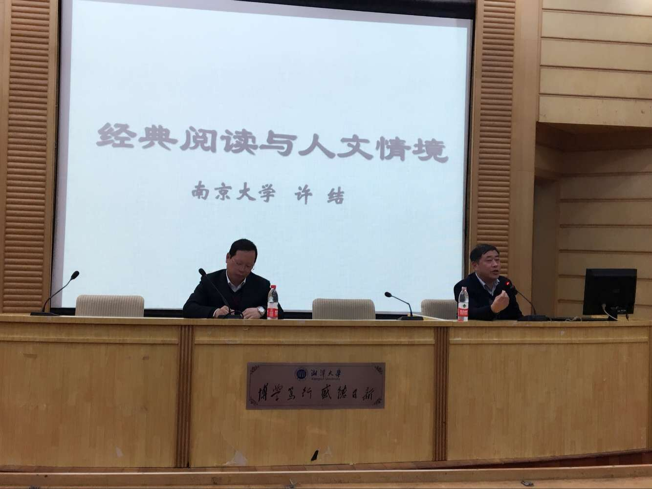 3月20日晚上,南京大学文学院教授、中国辞赋学会会长许结先生做客“韶风▪名家论坛”,在图书馆报告厅为我校师生作了题为“经典阅读与人文情境”的学术报告。