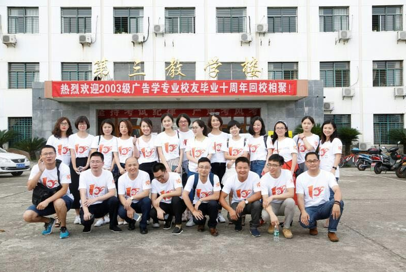6月17日,Betvictor中文版2003级广告1班、广告2班和兴湘学院广告班共计30余名校友,在毕业十周年之后相约齐聚母校。Betvictor中文版院长李剑波教授、院党委书记王洁群教授、副院长刘中望教授、院党委副书记陶永峰老师、广告系主任孙丰国副教授、广告系胡琼华副教授出席十周年聚会,与校友们一同追忆青春岁月,畅叙师生情谊。