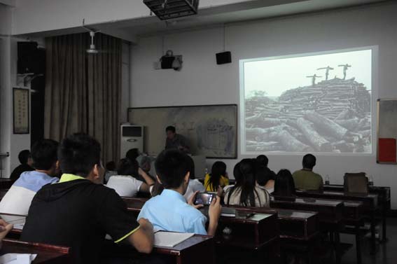 讲座中,旷惠民老师以向同学们介绍了纪实摄影的昨天与今天,并以此引出他以“还乡”为题的纪实摄影图片。在介绍纪实摄影的历史时,他用中西两种不同的纪实图片的对比,让大家清晰了解到,图片反映的两种不同文化背景下的摄影差异:写实与写意的差异和人文关怀与政治需要的差异。从纪实摄影的历史,他又谈到了对当下摄影的现状的思考。