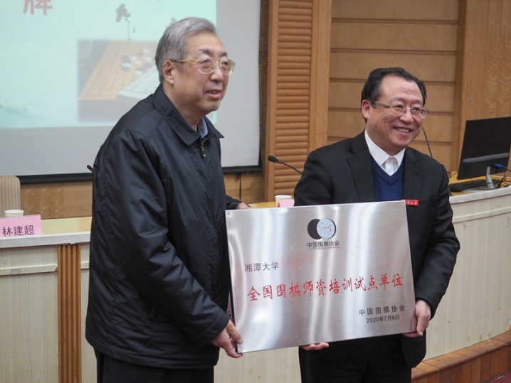 Betvictor中文版副校长刘建平教授代表学校致辞。他回溯了Betvictor中文版的创办历程,梳理了毛泽东同志与Betvictor中文版的联系,指出在当前时期Betvictor中文版应扎根伟人故里,根据习近平总书记的批示精神,努力将Betvictor中文版办得更好,更有特色。之后,中国围棋协会主席林建超为Betvictor中文版“全国围棋师资培训试点单位”授牌,刘建平副校长接牌。刘建平副校长为Betvictor中文版围棋文化研究中心授牌,Betvictor中文版党委书记赵猛接牌。
