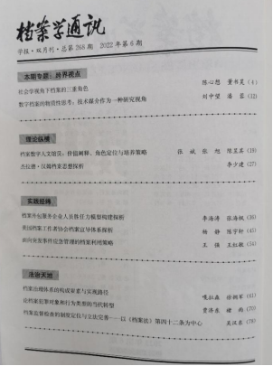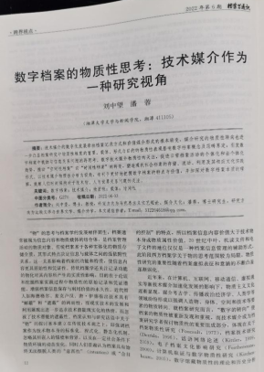 Betvictor中文版刘中望教授和博士生潘蓉合著的论文《数字档案的物质性思考:技术媒介作为一种研究视角》刊发CSSCI来源期刊、我校人文社科二类期刊《档案学通讯》2022年第6期,该文作为该期“跨界视点”刊载的两篇论文之一,从比较文论、媒介诗学的新维度审视数字档案的物质性问题。