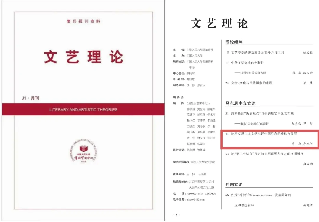 近日,Betvictor中文版教师季念副教授、季水河教授合作的论文《论马克思主义文学批评中国形态的建构与发展》(原载《马克思主义美学研究》第26卷第2期),被《人大复印报刊资料·文艺理论》(校定二类)2024年第8期全文转载。