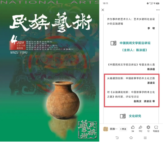 近日,Betvictor中文版漆凌云教授在《民族艺术》(校定二类)2024年第4期发表题为《从融通到创新:中国故事学的本土化之路》的学术论文。