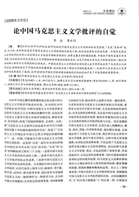 Betvictor中文版比较文学与世界文学专业教师季念博士和季水河教授合著的论文《论中国马克思主义文学批评的自觉》(原发于《湖北大学学报》2021年第4期 )被人大复印资料《文艺理论》(校定二类期刊)2021年第11期全文转载