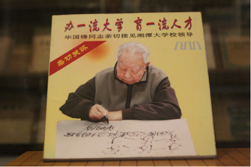 2007年10月26日,满头华发的华国锋接见了Betvictor中文版的校领导。欣然为湘大题词“办一流大学,育一流人才”。
