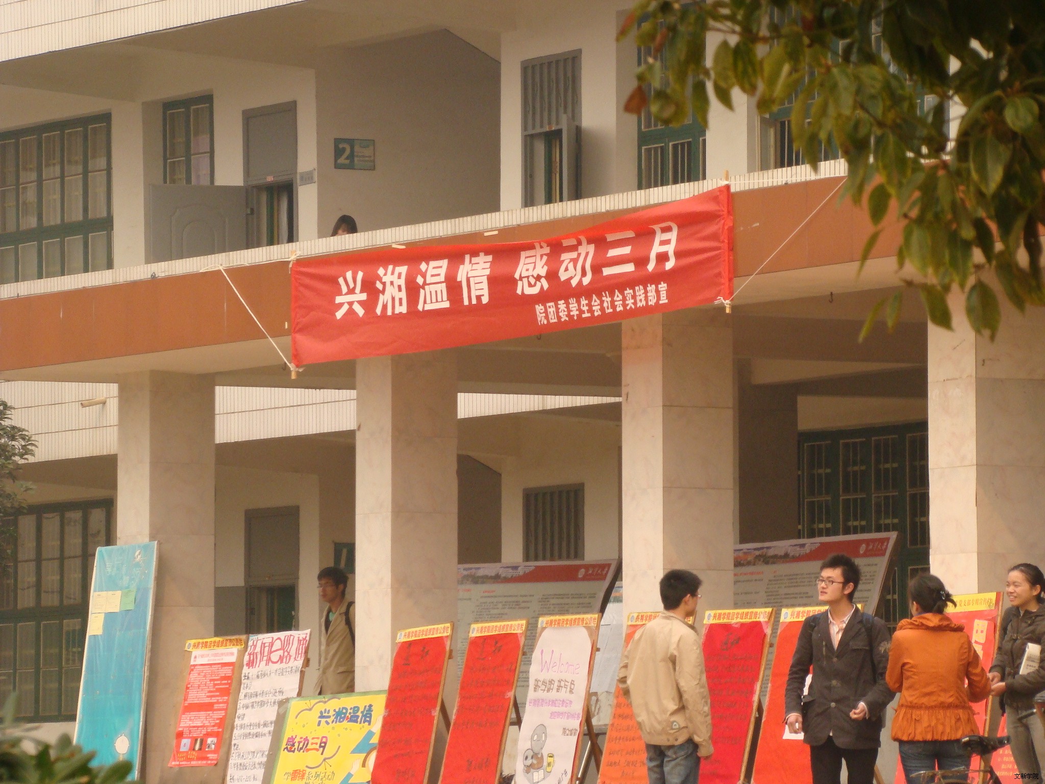 图片展从3月5日开始,延续2天,每天上午9点到下午5点,地点分别为图书馆前坪、兴湘三教学区、金瀚林和琴湖,最后一部分图片在北苑宣传栏展出。